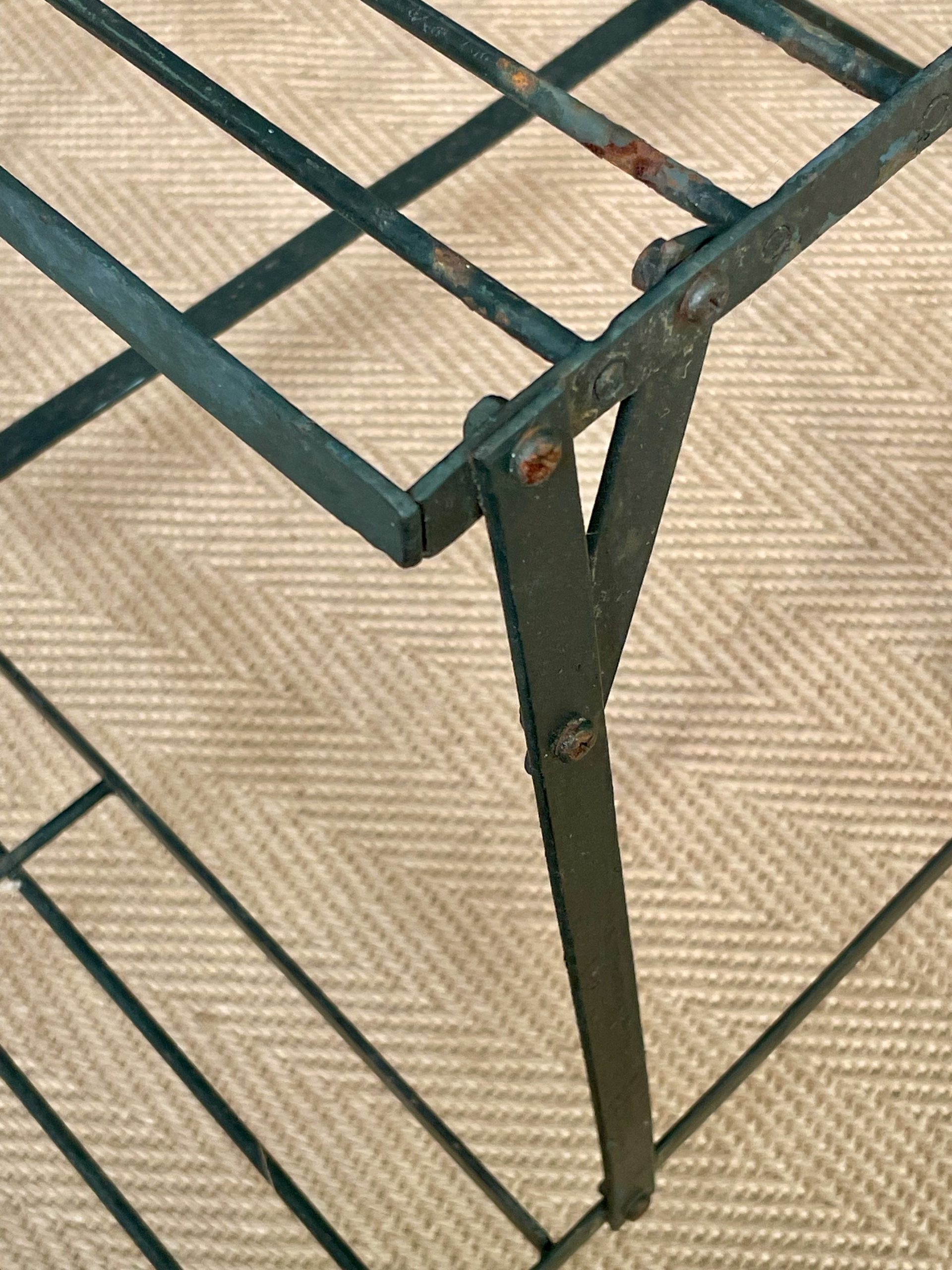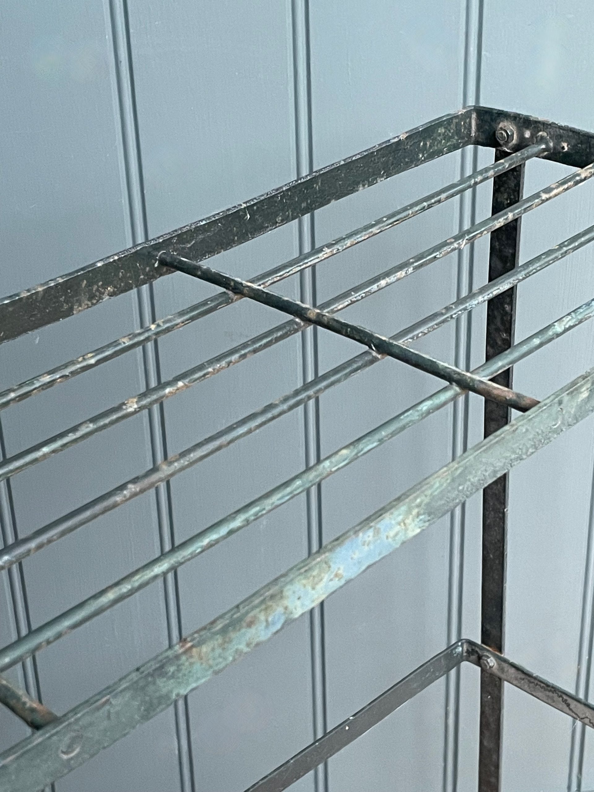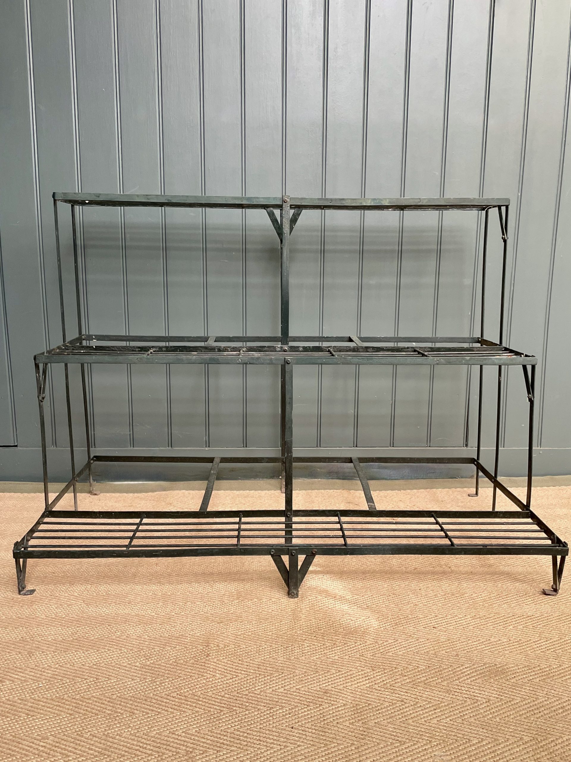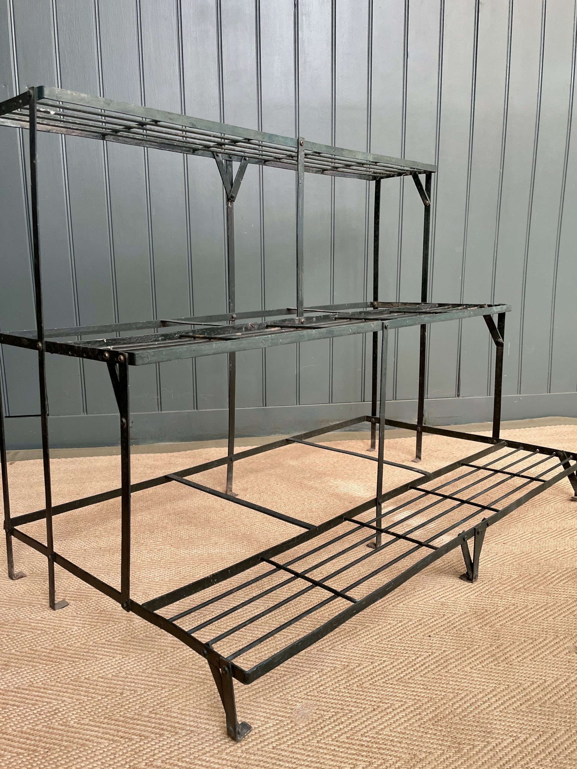 A classic French florist’s stand, with three tiers, and in a nice dark petrol colour. Some wear consistent with age, but a lovely example, and in a particularly nice colour.